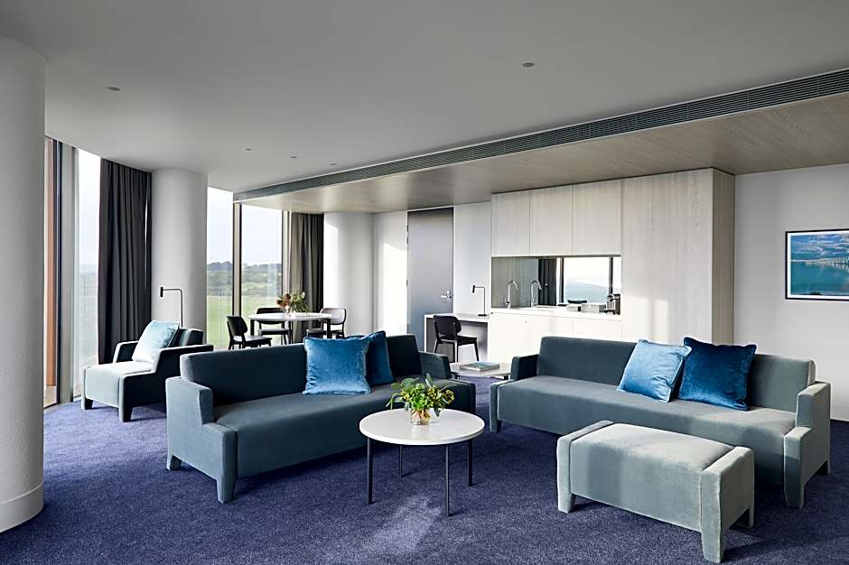 This bespoke suite offers panoramic views of either Port Phillip Bay or Bass Strait. These designer suites have ocean views from the deep soaking free standing spa bath, separate living and bedding spaces, an oversize 180-degree wrap around balcony, gourmet mini-bar, Nespresso coffee machine, plush robes, slippers and pillow menu.